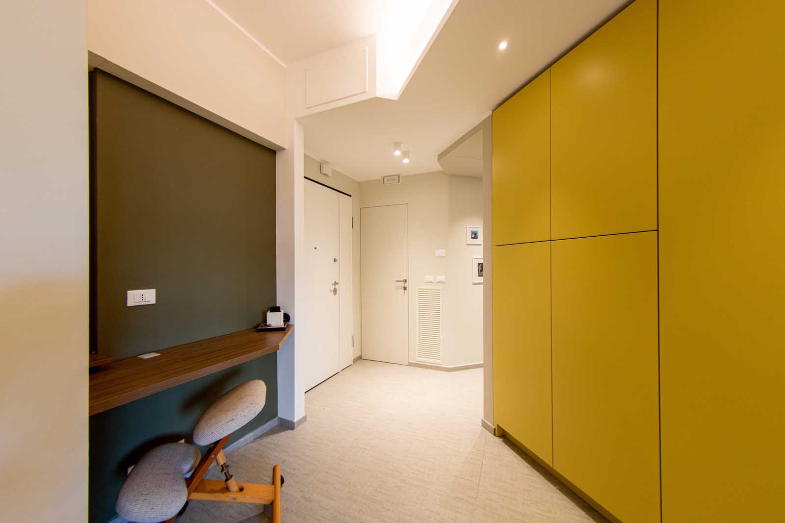 Una delle principali sfide progettuali era portare luce naturale nella zona d’ingresso, distante dall’unico affaccio finestrato dell’appartamento.